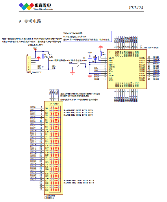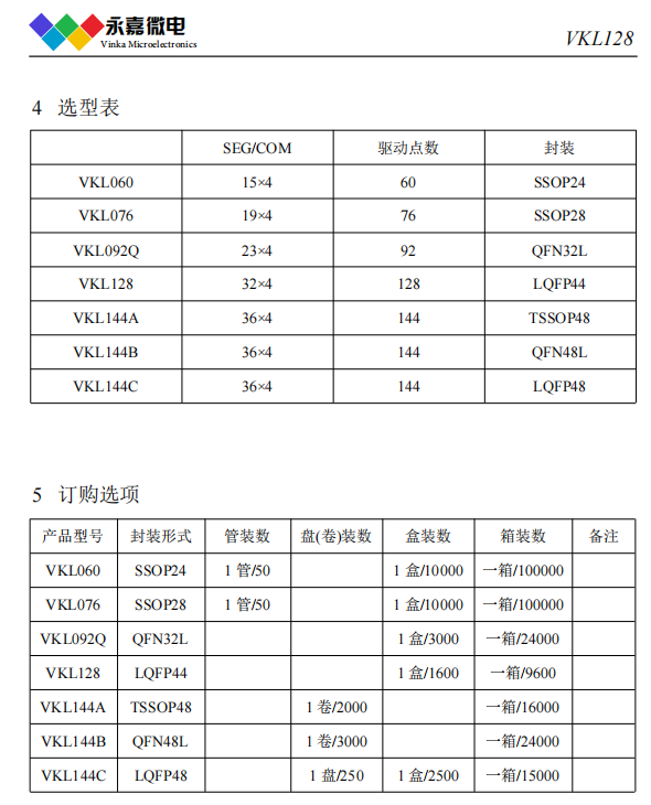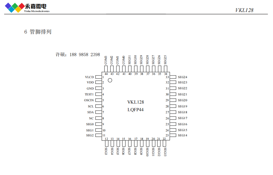 VKL128? ?2.5~5.5V?32seg*4com ?偏置電壓1/2 1/3 ?I2C通訊接口?LQFP44 超低功耗/抗干擾